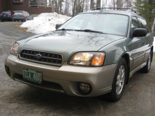 2004 Subaru Outback Wagon. One-family owned since new. 113,150 miles, 5-speed transmission, all-wheel drive, roof rack, alloy wheels, winter package (heated seats, side mirrors and wiper de-icer), fog lights, all weather floor mats and rear cargo tray. Tires have only about 10K miles on them. Timing belt and accessory belts changed at 86K miles. It has new brakes on all four wheels, new rear stabilizer links and a recent oil and filter change. It just passed the VT State inspection and it’s ready to go… Asking $3950. Please call Bill at 802-875-2974 for more information. Thanks for looking... (Car is also advertised locally and I reserve the right to cancel this listing at any time.)