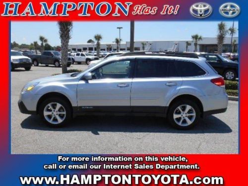 Rest assured with your purchase of this pre-owned Outback 2.5i Limited. Because a CARFAX BuyBack Guarantee is included, you have built-in peace of mind to drive off the lot confidently. When driving an all wheel drive vehicle, such as this Subaru Outback 2.5i Limited, superior acceleration, traction, and control come standard. Just what you've been looking for. With quality in mind, this vehicle is the perfect addition to take home. More information about the 2013 Subaru Outback: The base-level 2.5i Outback with the CVT is made for outdoorsy drivers, with a starting price under $24,000 and great gas mileage. The top-of-the-line 3.6R Limited, with its larger engine, leather seats and standard harman/hardon stereo system, starts at right around $32,000. All Outbacks, regardless of trim level include standard all-wheel drive, anti-lock brakes, traction control and air bags, as well as such niceties as power mirrors and cruise control. This model sets itself apart with great gas mileage, Stylish design, roomy, comfortable interior, and powerful engine lineup Hampton Toyota offers bottom-line pricing, special financing and the very best customer service around. We have a large selection of new and pre-owned Toyotas. Our goal is to deliver the best car-buying experience around, without the hassle. Plus tax, tags and licensing.Our used vehicles pass a 120-point safety and reliability inspection. please call 888-355-6345 and ask for Charles Boatmon