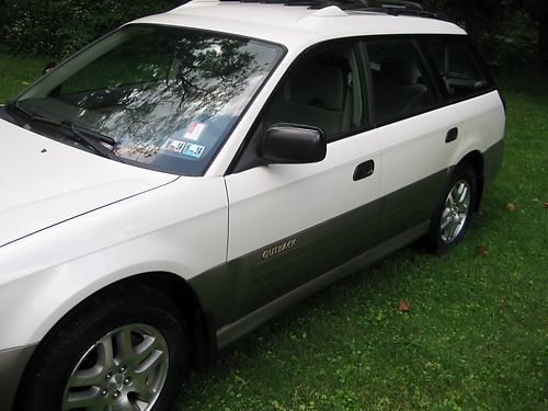 This is a recently traded 2003 Subaru Outback Premium that had one-lady owner since new. It is in extremely nice condition for its age. Has been well maintained since new. As you can see with all service records since purchase. Runs and drives perfect! Smooth and strong and has no fluid leaks. Matched set of tires are high on rubber. Body and paint are excellent. Interior is clean as a pin. Has most options including; cd, all power equipment and heated seats. Original floor mats are also excellent and show no wear Accessory mats are included and are exc. All options work perfectly including the a/c. Included are all operating manuals, both keys and remote. Low reserve and low buy it now. Any Additional information call KEN @ KEN'S AUTO 304-547-1188. Located 1-mile off I-70 near Wheeling, WV. Pittsburgh Airport pickup available $50. Also Greyhound Bus in Wheeling, WV.