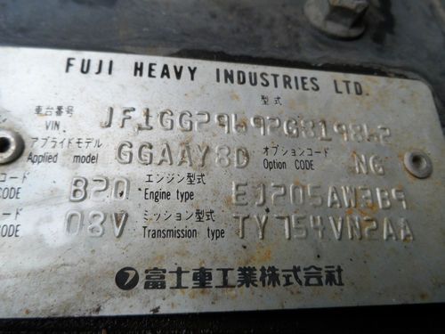 Engine:2.0L 1994CC H4 GAS DOHC Turbocharged