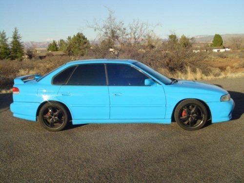 GREAT CAR! WHAT A GREAT CHRISTMAS PRESENT!!!!!!! RARE CUSTOM BUILD LESS THAN 5,000 MILES ON REBUILD!!!!!!! This car was put together and built by Pression Chassis Works in Phoenix. Over $25.000 put in this rebuild! The 98 Legacy was completely gutted and stripped down for a thorough restoration, drive train, wiring, computer and Interior upgrades from a 2002 WRX and STI. See entire build below! A wrecked 2002 WRX was acquired as a donor car for the complete engine/drivetrain conversion. The heads were rebuilt and at the time a brand new OEM shortblock was put in. Here's a list of everything that was done. VIN# 4S3BD675XW6202027 To See pics of rebuild from beginning to end email me and I will send you a link! EXTERIOR - Complete exterior color change from red to Porsche Mexico Blue using DuPont Chroma System products. - New OEM upper window seals (A-pillar, B-pillar, and C-pillar) - New OEM upper door trim - New OEM grill and emblem (charcoal) - JDM tail lights (with clear turn signals) - JDM projector headlights - Filled holes in rear deck-lid from emblems INTERIOR - New OEM floor mats - 2007 STI seats front and rear - 2007 STI steering wheel - New OEM center vent panel - New OEM shift boot and surrounding panel - New OEM STI 5 speed shift knob - Leather WRX emergency brake handle - WRX Pedals - New Alpine SPS600 rear speakers - New Alpine SPS600C front speakers (w/tweeters) - New Kenwood KDC-MP345U head unit (has USB and AUX ports in front) SUSPENSION - New ball-joints - New wheel bearings - Polyurethane bushings - 2007 WRX steering rack - Custom modified Legacy steering column to work with WRX steering rack and u-joints - 2007 WRX front and rear sub-frames - New brake calipers on all 4 corners (painted red and silver) - New brake rotors on all 4 corners - Stainless steel braided brake lines and clutch line - Whiteline sway bars front and rear - Whiteline sway bar end-links front and rear - Tokico D-Spec shocks modified for Ground Control coil-over kit - Ground Control coil-over kit - All control arms and spindles repainted satin black - Platinum 17" Widow rims - Nexxen 300 tires ENGINE/TRANSMISSION - Complete 2002 EJ205 WRX engine and transmission swap - Matching WRX rear differential - Brand new OEM short block (new from Subaru) with 1 year warranty - New OEM oil pump - Completely rebuilt heads - New timing belt with all new pulleys and tensioners - New water pump - New thermostat - All new rubber fuel lines - New OEM fuel filter - New Walbro 255 fuel pump - New OEM A/C compressor - Rebuilt A/C lines - New serpentine belts - Wrinkle black powder coated intake manifold and TGV's - TGV's deleted and ported - Wrinkle black powder coated valve covers - Custom 3" intake with K&N filter - Exhaust manifolds de-tabbed and header wrapped. - Invidia cat-less up-pipe header wrapped - Invidia cat-less down-pipe header wrapped and modified for V-band clamp - Custom stainless steel 3" exhaust using Magnaflow muffler with polished tip and V-band clamp - Custom oversized aluminum radiator with twin SPAL fans - Custom aluminum radiator overflow tank - New light-weight flywheel (chromoly not aluminum) - New clutch and pressure plate - Completely rebuilt driveshaft - Polyurethane shifter bushings - Odyssey lightweight battery To see complete pics and process of complete rebuild, email me and I will send you the link. Also added nice sub, amp for tunes and tinted the windows! |
