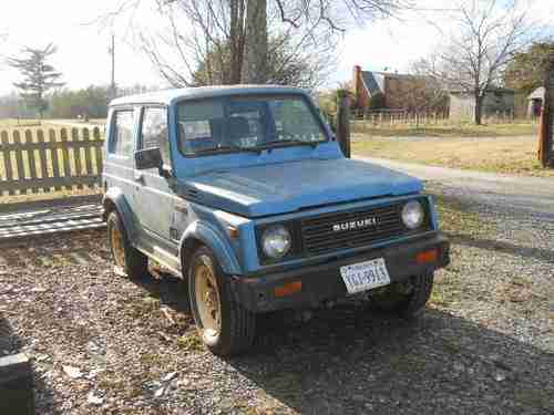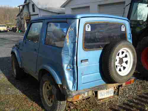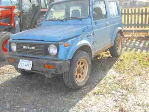 HAVE FOR SALE A SUZUKI SAMURAI HARDTOP.RUNS GREAT NO SMOKE,4X4 AND DRIVE WORKS GREAT.WHEN I BOUGHT IT CONVERTER WAS STOPPED UP AND WOULD NOT RUN,SO CUT EXUAST OUT AND NOW RUNS GREAT AND SOUMDS GREAT.BODY HAS DAMDAGE ON LEFT FRONT AND LEFT REAR.VERY LITTLE RUST. HARD TOPS ARE GETTING REALLY HARD TO FIND.