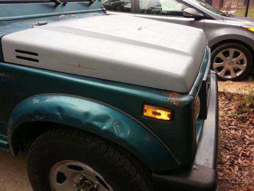 1990 Suzuki Samurai 4x4 EFI Upgraded the engine from the factory 1.3 with a rebuilt 1.6 8v engine, 5 speed transmission and front knuckles in March 2012 ( about 3000 miles on each) Replaced the clutch when transmisson was rebuilt in 2012 New windshield, seats, brakes, battery, 2011 Change the front axle, differential, and engine oil) 2012 Tires good, no bald or uneven wear patterns Radio missing faceplate so it doesn't work , new speakers in the doors Idles high when engine is cold for about 2 minutes then idles normal Small oil leak at the base of the distributor Have replacement fenders, grill, 4 fender flares, tailgate, 2" shackles, push bar with matching side step bars, trim under both doors, power steering setup from Geo Tracker(not installed), bikini top, missing dash trim, plus misc parts that are included with sale of vehicle. Please ask question so there are no supprises when you pick up the vehicle. No Warrenty, returns of refunds Buyer responsible for picking up vehicle or making arrangement for shippment (vehicle is located about 90 miles south of Atlanta Georgia) Seller requires $500.00 paypal deposit within 72 hours of bid closing and remaining balance due when vehicle is picked up and must be picked up or arrangments made with seller within 7 days. Vehicle is listed for sale in local area and seller has the right to cancel this listing if vehicle sells for at least the reserve price.