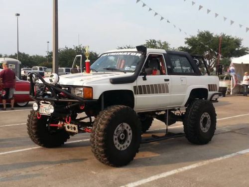 Dana 60 Front w/Lockrite Locker and 5.38 gears Corporate 14 Bolt Rear w/welded spider gears and 5.38 gears 4 Wheel Disc Brakes Full Hydraulic Steering Inchworm Dual Cases 2.28/4.7 w/twin sticks Rear Driveline Disconnect 4xInnovations Internal Cage Recentered Military Hummer Wheels w/PVC beadlock inserts 39.5 IROK Radial Tires Marlin Trail Flex suspension modified for full width axles Art Carr Gate Shifter Cut and rolled fenders to clear the tires 12 Gallon Fuel Cell w/relocated factory fuel door on driver side Trail Gear Front and Rear Bumpers 9.5k WARN PowerPlant Winch w/in cab winch/air compressor controls Safari Snorkel Custom Factory Half Top RXC Seats w/5 point harnesses Grant GT Steering Wheel Raptor lined floor pan Diamond plate aluminum interior panels Tantrum Rock Lights Sony Xplode Stereo Pyle 600 Watt Marine Amp Boss 6x9 Waketower Speakers attached to the cage Thor 3000w Power Inverter w/external accessible receptacle Flex-A-Lite Electric Fan Rock Ripper Header New Exhaust currently with no catalytic converter but have it to bolt back in Cobra CB radio Overhead quick release fire extinguisher Completely rust free and repainted satin white w/factory replicated graphics Recently rebuilt 22RE motor (less than 3000 miles) Recently rebuilt A340H Automatic Transmission (less than 3000 miles) Originally AC equipped but system needs to be recharged Originally Heat equipped but needs new heater core And last but certainly not least...the driver side rock slider is retractable. Works off it's own hydraulic system with pump and 2 rams to make it go up and down to assist the driver to get in. Tons of minor things that has been done to it...just too many to list. Clear blue title. Built to crawl but is also licensed and registered for street use. Will maintain 75 mph on the highway. Few minor dents and dings but nothing major. Have original window sticker and owners manual. Personalized license plate NOT INCLUDED. Fun all around vehicle. |