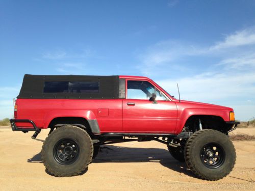1986 Toyota 4 runner. This is a well-built rock crawler. It works fantastic off road and pretty decent on the pavement also, though it wouldn't be my first choice as a daily driver. I'm really going to miss it but a growing family has moved me into a new project off-roader with four doors. I've never trailered it, always drove it to and from the trails. I've driven it to both CO and NM multiple times to wheel without issues. The body is in pretty decent shape. There is some paint fading on top of the cab. It has some small nicks, scratches and dents plus AZ pin striping, but nothing major I would point out. The interior is in quite good shape. The 22RE engine and W56 tranny are out of an 88 4runner. The engine runs well. The engine has about 187,000 miles on it and the body has about 215,000. There are no leaks anywhere on the truck that I have seen and I just looked it over again. I've probably put about 10-15,000 miles on it in the last 5 years. When it's not out on a trail, it's been kept in the garage. There is NO RUST anywhere on the body or frame. Just passed Maricopa county emissions 3/28/14. I have most of the receipts for all the parts. Lots of stuff listed below and there is probably more stuff I forgot to mention. Ask away if you have any questions. Front axle • 1984 front axle. Rebuilt about three years ago. Has around 5,000 miles on rebuild • 571 gears • ARB air locker run off ARB compressor in engine bay • Longfield 30 spline chromoly axles • Longfield chromoly inner hub gears • Longfield knuckle wipers • Marlin HD inner seals • Trail Gear rock rings • Larger IFS calipers and vented rotors • ARP knuckle studs • Timken wheel bearings • Diff armor and axle truss • Extended breather Rear axle • 571 cryo'd gears • Detroit locker • All Pro rear disk brake conversion • Diff armor • Extended breather Off road • All Pro SAS kit. 5" front/6" rear springs. Bilstein 5100 12" shocks • All Pro front bumper • All Pro kick-out rock sliders • Marlin Crawler rear bumper • All Pro interior roll cage tied into stock rear roll bar • Advanced Adapters 5.0:1 dual transfer case with Marlin Crawler HD shift springs. 257:1 crawl ratio • Budbuilt dual case crossmember • All Pro transfer case parking brake • Custom rear axle wrap bar built with Johnny Joints • 5 -- Pro Comp 17x9 black Rock Crawler wheels. These are basically new. I had them installed a couple of months ago and have put very few miles on them. Never been off road • 4 -- 37x12.5x17 Goodyear Wrangler MTR Kevlar tires with 18/32 tread. New is 21/32. They have some rock rash but no plugs/patches. No leaks. Spare is an old-style 37x12.5x17 MTR with rock rash, no plugs/patches and no leaks • J.E. REEL long travel double cardan front drive shaft • Double cardan rear drive shaft • Ramsey REP8000 winch with 5/16 x 100' synthetic line with safety thimble. • 1994 4runner steering box moved forward about 2" • Optima Red Top battery • LCE street header, Denso O2 sensor, Magnaflow cat running through a stock replacement muffler. All installed within the last few years Other good stuff • Can-Back soft top frame with a custom built soft top. Soft top was built by a professional boat upholstery shop with Sunbrella fabric. They made a few upgrades over the can-back top including a zipper rear window instead of Velcro. No rips or tears. No hard top with the truck. Tailgate has also been gutted. No glass or window mechanism • FJ80 1" master cylinder with a manual proportioning valve kit from Front Range Off-Road to control the rear disk brakes • Hella H4 headlight conversion Interior • Front seats out of a mid 90's Acura Integra. Coverking custom fit neoprene seat covers. No rear bench seat. This is where the spare rides • Cobra 18 WX ST II CB radio installed in the DIN space below the CD player. Coaxial cable run all the way out the back to a CB antenna mount. All you need to supply is the antenna and tune it • Basic CD player. Aux-in on the back but no front inputs. I know the radio works but don't know about the CD player. It off most of the time cause it's hard to hear much over the tire/road noise at freeway speeds anyway. Only has two front 4" speakers • Aftermarket custom fit vinyl floor kit • Grant steering wheel Issues -- Nothing major to report, but this is what I can think of. Some of them have been around for the past five years I've wheeled it. Just not important enough for me to look into fixing. • Speedometer reads about 7 MPH fast • Fuel gauge work up until about 3/4 to 1/2 a tank then it drops off fast. Sending unit probably needs to be changed. I just use the trip meter • Horn does not work. Never looked into it • A/C is all there, but does not work. Never looked into it either. Never drive the truck in the summer here in PHX I happy to answer any questions you have before the auction ends. Just send me a message with your phone number and I will give you a call. The 4runner is for sale locally also, so I reserve the right to end the auction early if it sells before the auction ends. If you are local and you want to come take a look before the auction ends, just let me know. Payment A $500 Paypal non-refundable deposit, is due within 24 hours after the auction ends. The balance is then due within 7 day either in cash or a bank to bank transfer. I will not line up a shipping company for you but I will work with a shipping company that you setup. If you have any questions on any of this, please get clarification from me before the auction ends. |