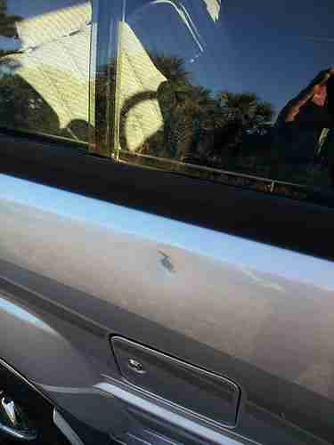 - EXTERIOR- VERY CLEAN BODY THE PAINT ON THE ROOF AND HOOD ARE FADING.THERE IS NO RUST ON THE BODY BUT THE WINDOW FRAMES ON THE TOPPER HAVE SOME RUST.THERE ARE A COUPLE OF DINGS IN IT BUT I WOULD HAVE A PDR GUY TAKE THEM OUT.THE WINDSHIELD HAS A CHIP IN IT.