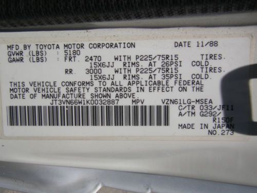 Selling this well-kept 1989 Toyota 4Runner, SR5. Originally purchased for my nephew who has decided to serve our country and put off college. Although admirable in nature, we cannot let this rig sit four years so we are passing it off to the next Toyota loving family. It is highly desirable first generation with the removable top. It has "WARN" locking front hubs. It is lifted. We were informed that it is a "Pro-comp" lift but have not found any markings to indicate this. Anyway, it looks GREAT. We just installed some BFG All Terrain tires, 33x12.5x15. They are "meaty" and give it a rugged look. The previous owner's fixed almost every mechanical wear item within the last two years. There is a stack of paperwork to substantiate this.