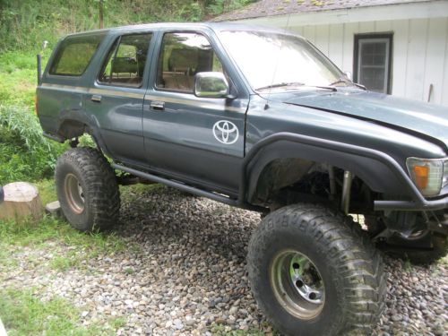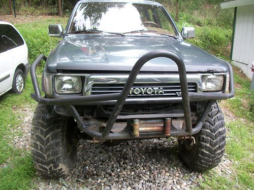 one 1991 toyota 4 runner rock crawler has lockers needs some work new wheel cylinders new brake lines. needs battery. needs brakes bled better. some rust on back door and around wheel wells starts right up sold as is please ask all questions before bidding all sales final easy fix if you have the time one tire has plug needs muffler if you want(( OFF ROAD CAR)) has crack in windsheld not in drivers side some rot on frame in back great off road truck for the price engine and transmission are fine