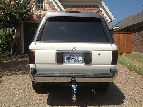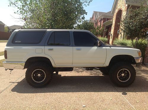 94 Toyota 4Runner 4WD Auto V6 Everything works flawlessly on this truck New Motor andTransmission installed 25k ago all windows A/C, heat 4x4 everything works as it did in 94 new Paint, tires, lift, motor, and transmission within the last 25k absolutely no leaks or problems this truck is flawless except for a couple small cracks in the dash only 156623 original miles on the body there is no rust on this truck at all starts and runs flawless every time been my daily driver for the past 2 years phenomenal truck never been in the mud or off road you won't regret buying this truck I can assure you please don't bid unless you intend to buy if you have any questions please feel free to call me at 7046049885