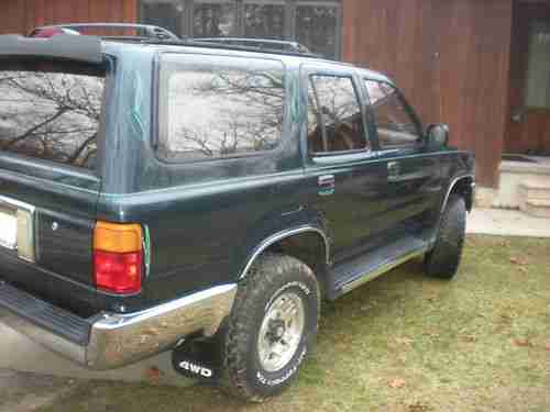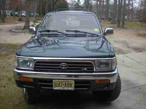 YOU ARE BIDDING ON OUR 1995 TOYOTA 4RUNNER, WE HAVE OWNED IT SINCE IT HAD 40,000 MILES ON IT, WE HAVE MAINTAINED IT VERY WELL, GETS MOBIL 1 OIL CHANGES EVERY 3000 MILES, IT IS IN EXCELLENT SHAPE, EVERYTHING WORKS WITHE THE EXCEPTION OR THE RADIO ANT , IT IS UP ALL THE TIME , ( NEEDS NEW ANTENNA MOTOR) NEVER BOTHERED US BEING UP ALL THE TIME, NO TEARS OR RIPS IN INTERIOR EXTERIOR HAS A FEW MINOR RUST ISSUES, BUT IS IN BETTER COND THAN MOST, ( I TOOK PICS OF FLAWS) I AM A ASE CERT MASTER TECH, AND HAVE MAINTAINED VEHICLE REALLY WELL, - OIL CHANGES EVERY 3000, ( MOBIL ONE) TRANS TRANSFER CASE AND DIFF CHANGED EVERY 30,000. BRAKES ARE ALMOST NEW, EXHAUST IS NEW, HEAD GASKETS AND VALVE JOB DONE AT 200,000 IT WILL BE DUE FOR A TIMING BELT AT 260,000. ( I CAN DO THIS FOR $300) , THINGS I HAVE DONE OVER THE PAST FEW YEARS , NEW PS PUMP, STEERING IDLER ARM, ALL NEW SHOCKS, FUEL PUMP , FUEL INJECTORS, SPARK PLUGS WIRES, BELTS ETC TIRES ARE NEW ( JUST PUT ON ADDED PICS OF NEW TIRES) BRAKES ARE NEW, BATTERY IS NEW, NOTHING TO HIDE , IF YOU ARE LOCAL COME CHECK VEHICLE OUT, I WOULD NOT THINK ANYTHING OF JUMPING IN IT AND DRIVING TO CALIFORNIA, IS IS A RELIABLE VEHICLE. WITH ALL THAT SAID , I WILL ACCEPT CASH PAYMENT AT TIME OF PICKUP, OR WIRE TRANSFER TO MY BANK, NO PAYPAL FOR THIS, , VEHICLE HAS CLEAR NJ TITTLE, AND CURRENT NJ INSPECTION, GOOD FOR ANOTHER YEAR, I WILL WORK WITH YOU TO HELP WITH SHIPPING - I CAN DELIVER TO A SHIPPER IN PHLIA AREA IF THAT HELPS, AND YOU ARE MORE THAN WELCOME TO COME PICK IT UP, ANY QUESTIONS PLEASE ASK, THANKS FOR LOOKING
