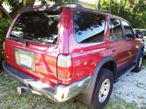 1- CLEAN TITLE 2- ONE OWNER 3- NO ACCIDENTS, ORIGINAL PAINT 4- RUNS SMOOTH, QUIET AND STRONG (QUIET STEADY MOTOR, NO SMOKING) NO OIL LEAKS WHEN PARKED. 5- ALL ELECTRICAL WORKING: LIGHTS, SUNROOF, ALL WINDOWS, REAR WINDOW, MIRRORS, RADIO ANTENA, CD, CASSETT. 6- AC SUPER COLD, HEATER WORKING 7- ALL TIRES ARE GOOD, SAME BRAND, NO ALIGMENT ISSUES OR NOISES OF ANY KIND WHEN DRIVING OR TURNNING. 8- CAR WAS NOT CLEAN PRIOR TO PICTURES (LIKE TO KEEP IT AS DRIVEN). LOOKS EVEN BETTER WHEN CLEAN. 9- RESENT ISSUES: ODOMETER WAS REPLACED DUE TO SPEED NEEDLE NO WORKING. (MILES ARE NOT ACCURATE) IF BUYING BUY DUE TO CARS GREAT CONDITION. THIS IS A TOYOTA WELL KEPT AND MAINATINED. I MUST MENTION ANY MILES/ODOMETER CHANGES (LEGALLY). HONESTY IS MY SELLING STRONG POINT. SEE MY FEEDBACK. 10- NORMAL WEAR AND TEAR BU BETTER THAT MOST 1997 TOYOTA 4RUNNERS. CALL 7863087344. REMEMBER YOU MUST PAY YOUR STATE TAXES, AND ANY FEES ATTACHED TO THE PURCHASE OF CAR. HOWEVER YOUR PAYMENT IS THE WINNING BID AMOUNT. TAX, INSURANCE, REGISTRATION OR ANYTHING ELSE BUYER IS RESPOSNSIBLE FOR IT. MUST HAVE ACTIVE DRIVER LICENSE. ASK FOR ANY DETAILS OR SPECIFIC PICTURES