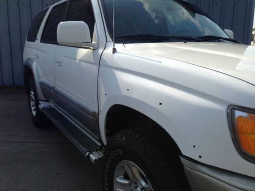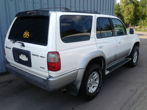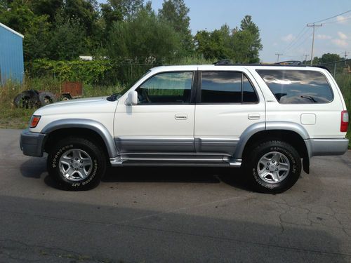UP FOR AUCTION IS A 1999 TOYOTA 4RUNNER SUV FULLY LOADED WITH ONLY 143,000 MILES ON IT! THIS TRUCK IS SERVICED AND READY TO DRIVE! NO CHECK ENGINE LIGHTS NO ENGINE KNOCKS VEHICLE RUNS GREAT SHIFTS SMOOTH GOES IN AND OUT OF 4WD SMOOTH NO ISSUES BRAKES DRIVE TRAIN SUSPENSION IS ALL TIGHT NO ISSUES! THIS TRUCK IS CLEAN IT IS MISSING ONE FENDER FLARE AND I TOOK A PICTURE ON THE DRIVER SIDE FRONT FENDER THERE WAS A CHIP AND THERE IS SOME SURFACE RUST OTHER THEN THAT THE BODY ON THIS TRUCK IS ROCK SOLID NO RUST! TRUCK HAS A COUPLE NORMAL DINGS AND DENTS BUT NOTHING MAJOR. TIRES HAVE DECENT TREAD STILL! OVERALL THE INTERIOR IS IN GREAT SHAPE THE DRIVER SEAT HAS A RIP IN IT BUT OTHER THEN INTERIOR IS CLEAN HAS POWER EVERYTHING ALONG WITH SUNROOF. THESE TRUCKS RUN FOR EVER! I DO HAVE A CLEAN NEWYORK STATE TITLE IN HAND. AGAIN THIS TRUCK IS TURN KEY!IM SURE IM FORGETTING MORE BUT PLEASE CALL ME OR EMAIL WITH ANY QUESTIONS! 585-766-7776. I DO HAVE A LARGE FORK LIFT ON SITE TO HELP ASSIST LOADING IF YOUR GOING TO SHIP THIS VEHICLE. I DO RESERVE THE RIGHT TO END ACTION EARLY ANYTIME AND ALL SALES ARE FINAL TRUCK IS SOLD AS NO WARRANTY AND I ALSO REQUIRE FULL PAYMENT WITHIN 7 DAYS OF AUCITON ENDING. AND AGAIN ANY OTHER QUESTIONS JUST ASK!