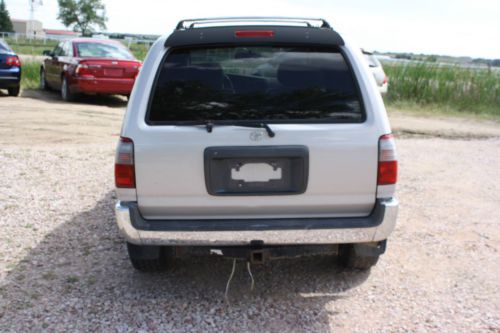 Up for sale is our 1999 Toyota 4Runner. It runs great, no known mechanical issues or leaks. Air conditioning blows cold. We recently took it on a business trip and drove over 2,000 miles with no problems at all. The only thing we came across was that the gas gauge doesn't drop all the way down to empty. It drops about halfway, and then from there we just watched our mileage and estimated each fuel stop. We hitched a trailer for the first half of the trip and still no problems mechanically or handling. This 4Runner is a 2 wheel drive. The interior has a few tears, and the body has few small rust spots. Small scratch on hood. See pics. $100 starting price. This is a no reserved auction. High bid wins. $500 non-refundable deposit due within 24 hours. Free Pickup at Colorado Springs or Denver International Airport. Fly in, pick up the Prius, and drive it home. We hold clean and clear Colorado title. Full payment must be paid within 7 days via cash, certified funds, or credit card. We are happy to work with any shipping company or we can suggest our own. Colorado residents must pay the 2.9% state sales tax. We charge no other handling or dealer fees. Any other questions call or e-mail me, Clayton, Internet Sales Manager, @ 9043391429 or clayton@driverightmotors.com.