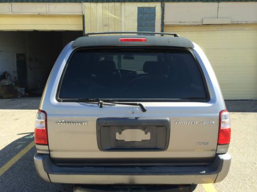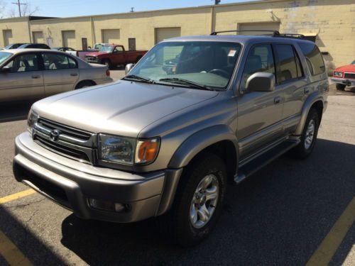 Up for sale is a 2001 Toyota 4Runner Limited. Original 90K. Leather , loaded . 4WD. Engine and transmission are perfect. Runs & drives NEW. Roof rack. No mechanical problems. CD. Keyless entry. Good tires and brakes. Sunroof, towing package. Clean in and out. No any leak , or smoke. No any warning lights. No rust. Just 4WD light blinking, 4x4 work not properly!!!!! Great car for real low reserve price. See pictures for details. Call with any questions. 216 347 1693. You can buy a great car for a great money. $145.00 registration and title fees. $18.50 temporary tag (if needed)