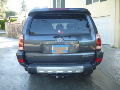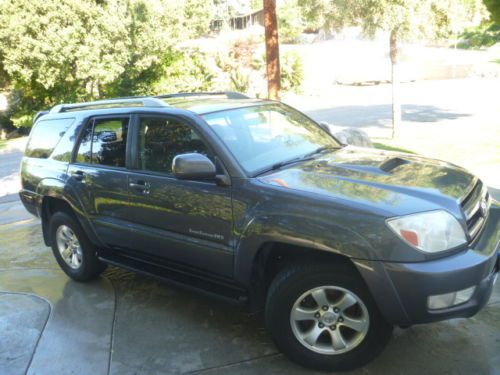 This a 2004 Toyota 4Runner Sport Edition 4.7L 4WD. It is in great shape. Interior is perfect no tears in seats and no major scrapes or scratches on door panels. It is a non-smoker vehicle. All maintenance has been done on schedule. I gets 18 to 21 MPG on the HWY. New tires, AC, high mount brake light, dual level rear storage, JBL factory sound system. Everything works perfect. Minor road dings in front hood, minor paint fading on roof and high mount brake light, a few minor door scratches. All services on front dif, rear dif, trans, tranfercase, and motor have been done. Call if any questions. 626-664-2048
