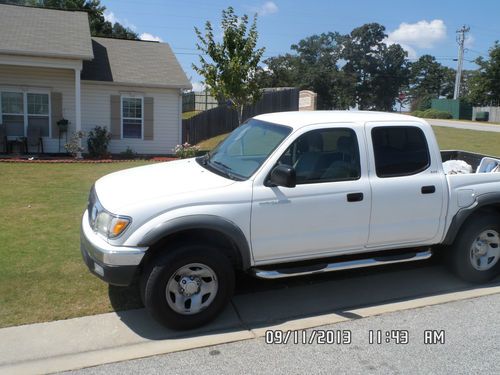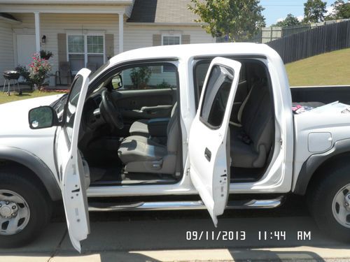 I am selling a 2004 Toyota tocoma sr5 prerunner . this truck is white with grey interior .this truck has 4 doors. the only small detail about this truck is that it has a cracked windshield but if it does sell will be fixed before pickup.iv had the truck since 08 have never had any problems out of it at all great truck and runs perfect.the only thing iv ever done to it is had a new air compressor put in this year but the truck is in really good condition please feel free to contact me with any questions.other than that this is a great truck. this truck has 150,000 miles on it