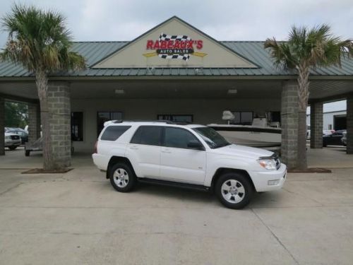 Thank you for visiting another one of Rabeaux's Auto Sales's online listings! Please continue for more information on this 2005 Toyota 4Runner SR5 w/Sunroof with 94,887 miles. With more CARFAX one-owner vehicles to choose from than most other dealers, Rabeaux's Auto Sales is the place to purchase a great, new pre-owned vehicle like this Natural White 4Runner. As a compact SUV, this vehicle packs all the performance of a full-size into a package that easily navigates the urban terrain. You can tell this 2005 Toyota 4Runner has been pampered by the fact that it has less than 94,887 miles and appears with a showroom shine. Although this 2005 4Runner SR5 w/Sunroof is technically a pre-owned vehicle, the clean and spotless interior could fool even the toughest critic. This Toyota includes: CARGO NET (PPO) CARPET FLOOR/CARGO MAT SET DELUXE 3-IN-1 AM/FM STEREO W/CASSETTE/CD PLAYER PWR TILT/SLIDE MOONROOF LEATHER-WRAPPED STEERING WHEEL/SHIFT KNOB ANTI-THEFT DEVICE HOOD PROTECTOR (PPO) REAR SPOILER 17 X 7.5 ALUMINUM WHEELS ELECTROCHROMIC REARVIEW MIRROR W/COMPASS ALLOY WHEEL LOCKS (PPO) V.I.P. RS3200 PLUS ALARM SYSTEM BLACK ROOF RACK SPORT BUMPER TRIM (PPO)