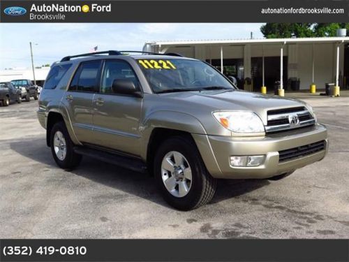 AutoNation Ford Brooksville is honored to present a wonderful example of pure vehicle design... this 2005 Toyota 4Runner SR5 only has 108,487 miles on it and could potentially be the vehicle of your dreams! Gone are the days of SUVs being the size of a tank and handling like one. This Toyota 4Runner is a perfect example of how SUVs have evolved into vehicles that are as refined as they are rugged. The mileage on this 4Runner SR5 is reflective of it's age and you can tell. The previous owner took great care of this vehicle so that you'll be able to enjoy the benefits of a well cared for vehicle offered to you by AutoNation Ford Brooksville. Driven by many, but adored by more, the 4Runner SR5 is a perfect addition to any home. This Toyota includes: FRONT SEAT-MOUNTED SIDE-IMPACT Driver Vanity Mirror Passenger Vanity Mirror Front Side Air Bag Passenger Illuminated Visor Mirror Front Head Air Bag Driver Illuminated Vanity Mirror Rear Head Air Bag *Note - For third party subscriptions or services, please contact the dealer for more information.* Please call888-454-6159, Internet Sales Manager, for special Pricing. No combined discounts or sales. Good Credit, Bad Credit, No Credit, No Problem!