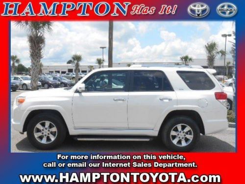 With the CARFAX Buyback Guarantee, this pre-owned vehicle comes with peace of mind, standard. In their original incarnation, SUVs were chiefly owned by folks who valued utility above sport. Not anymore! The Toyota 4Runner SR5 redefines the SUV and makes the perfect all around family companion. The mileage on this 4Runner SR5 is reflective of it's age and you can tell. The previous owner took great care of this vehicle so that you'll be able to enjoy the benefits of a well cared for vehicle offered to you by Hampton Toyota. More information about the 2011 Toyota 4Runner: The Toyota 4Runner debuted in the U.S. more than 25 years ago. Now in its fifth generation, this midsized SUV uses the same platform as the FJ Cruiser and maintains its truck-like body-on-frame construction. A third row of seats is available and both the second and third rows fold completely flat without having to remove the headrests, providing a cavernous 90 cubic feet of cargo space. The optional sliding rear cargo deck can support up to 440 pounds. Interesting features of this model are Great combination of truck-like performance and car-like agility, increased durability and strength, incredible off-road handling and capability, and smooth and comfortable ride Hampton Toyota offers bottom-line pricing, special financing and the very best customer service around. We have a large selection of new and pre-owned Toyotas. Our goal is to deliver the best car-buying experience around, without the hassle. Plus tax, tags and licensing.Our used vehicles pass a 120-point safety and reliability inspection. please call 888-355-6345 and ask for Charles Boatmon