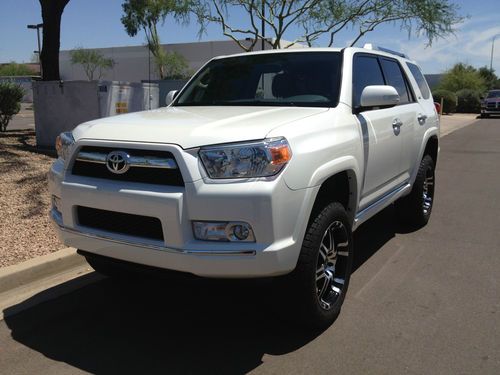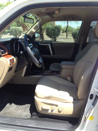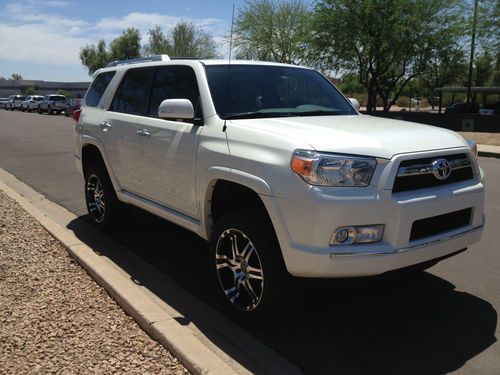2011 Toyota 4Runner SR5 4dr SUV (4.0L 6Cyl) with Blizzard Pearl Exterior, Tan Leather Interior. Loaded with 4.0L V6 DOHC 24V Engine, Wood Grain package, Power Front Seats, Cruise Control, AM/FM/CD/Aux Audio System, Power Windows, Power Door Locks, Power Exterior Mirrors, Roof Rack, Tow Package and Fog Lights.3 Inch full suspension lift with 20 inch wheels and Nitto All terrain tires. Also comes with original stock wheels and tires with only 2000 miles on them. I am Original Owner. Any questions please email me. |
