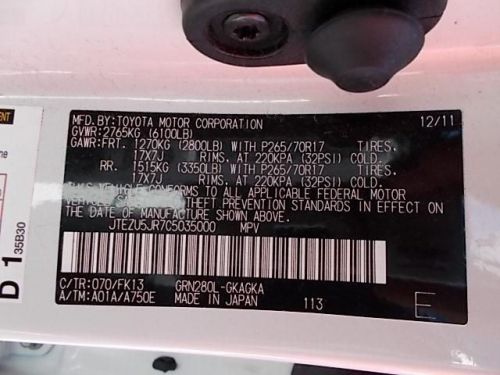 VIN (Vehicle Identification Number): JTEZU5JR7C5035000