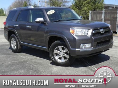 CLEAN CARFAX~~~'CONVENIENCE PACKAGE' w/ MOONROOF & XM RADIO~~~4WD~~~STILL FACTORY WARRANTY! If you've been searching for a deal on a new 4Runner, but are wanting a lower price...consider this 2013 Toyota 4Runner SR5 4WD w/ Convenience Package, TOW PACKAGE, All Weather Floor Mats & Cargo Tray...all for THOUSANDS LESS THAN NEW. You'll still enjoy the remainder of FULL FACTORY WARRANTY (3 Years/36,000 Miles), so you'll be able to buy with total confidence. Drivers will enjoy the upgraded features, including: CONVENIENCE PACKAGE ($1,580--Sport Fabric-Trimmed 8-WAY POWER SEAT & 4-Way Power Pass Seat /w LUMBAR SUPPORT, MOONROOF w/ Sunshade), HITCH BALL MOUNT ($60), ALL WEATHER MATS & CARGO TRAY ($200), Cargo Cross Bars ($185), Cargo Cover ($154). 4Runner is one of the last BOX on FRAME, true SUV's, meant for both paved road commuting and OFF-ROAD Exploration. Fully capable 4WD with absolutely STUNNING ability. 4Runner is the real deal. Go drive an Explorer, Pilot, or any other unibody (same as a sedan or minivan) 'SUV'--then compare it to the 4Runner? You'll notice the difference. This isn't for show...the 4Runner can go. Customers will also LOVE the reputation for 4Runner lasting, 200K Miles, 300K Miles, even 400K miles with regular maintenance. (Heck, we've got a 2002 4Runner SR5 on the lot right now with 210,000 and it would still trounce just about any brand new SUV in most ability tests!) This is the best...with the best reputation and some of the highest resale value in the market! Come find out why at Royal South Toyota! Most of our Used Vehicles come with a 3 month / 3,000 mile warranty, FREE of charge!! All purchases give you FREE CAR WASHES every Saturday for the life of the vehicle! Thank you for considering Royal South. Disclaimer: All prices listed are believed to be accurate; we don't warrant or guarentee listed price.