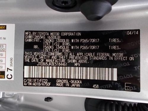 VIN (Vehicle Identification Number): JTEBU5JR3E5184461