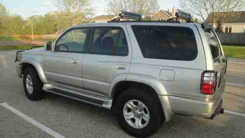 Here's a rare chance to own a fully dealer maintained, fully loaded, low mileage beautiful Millenium Silver 2001 Toyota 4runner Sports Edition with CDL (center differential lockers). It has been garage kept all its life and the body is rust- free with no major dents, dings, or any scratches. Fully equipped with all Toyota options including towing pckg, pwr moon-roof/sun-roof, Toyota anti-theft alarm system, 2-way heated leather seats, in dash cd with cassette player, running boards, roof rack, rear heat, power ECT mode, fog lights, and all power options etc...