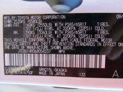2008 toyota 4runner rwd 4dr v6 sr5 abs alloy cruise bags cd mp3 leather moonroof