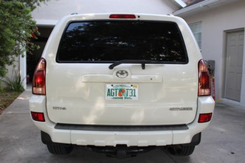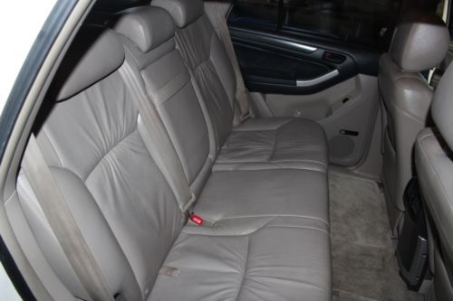 I have been the sole owner of this vehicle since I bought it new. All maintenance has been completed including the 1500 dollar timing belt and water pump related maintenance at 100k miles. This vehicle has been incredibly reliable and I have never had an actual mechanical issue. Only standard maintenance. I just had the oil changed and when inspected the shops only comments were that the brakes have only about 30 percent lifespan before they need to be considered. The Vehicle runs perfectly. There is not a single bulb out or any other mechanical problem. As is typical of a vehicle this age there are scuffs and marks, cracks and dings on both the interior and exterior. I have attempted to show as much of this as possible with the pictures that are included. There are no tears in the leather but the floor mats should be replaced and it wouldn't hurt to steam clean the carpets. I have just had it hand waxed in the last few weeks. This was the absolute top of the line 4Runner when I purchased it. I'm not going to list every feature that it comes with but there were no other options at the time when I bought it. JBL Synthesis stereo sounds amazing, full time 4 wheel drive (I live in Florida and it has never seen snow). Leather seating, auto dimming mirrors, power seats, towing package (I have never towed with it), 5 disc CD in dash changer, etc etc. If you are looking for a super vehicle at a really great price this is it. This car has no limitations and will make a great daily driver or maybe just an extra vehicle. I will of course cooperate with the buyers shipper of choice. Feel free to ask any questions and I will attempt to answer them in a timely fashion. |