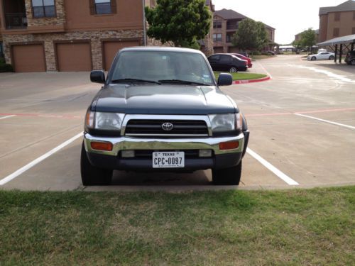 1996 Toyota 4runner limited. Upgrades: timing belt, 3 drive belts, water pump, radiator, rear brakes, rear shocks, Front brake pads, transmission fluid changed and checked by a transmission shop, new oil, new anti-freeze. Installed a new radio. Center console top is not attached, Rear seat head supports are gone, passenger side fender flares are gone. Currently the 4wd is not working. Tires are about 40%. It is a good daily driver.