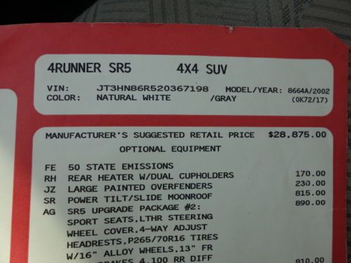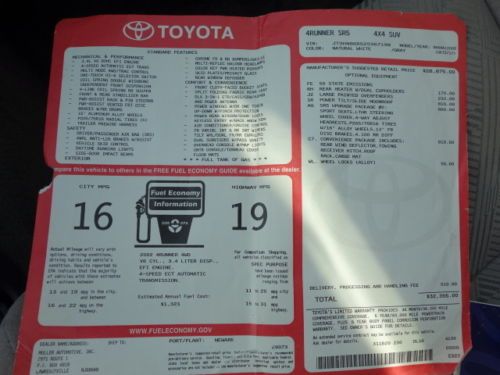 Toyota 4runner Sr5 4x4 Automatic Power Sunroof Sport Seats No Reserve on 2040-cars