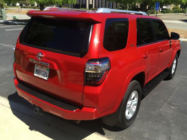 2014 4Runner SR5 -- RED -- 59,025 Miles EXCELLENT CONDITION Standard Equipment: The 2014 Toyota 4Runner SR5 has, 8-speaker Entune Audio Plus system with AM/FM/CD/USB player and Bluetooth music streaming, HomeLink remote transceiver, rearview camera, fabric interior (Black & Gray) and 8-way-power drivers seat. New tires September 2016, Goodyear Wranglers California License Plate tags paid until July 2017 SUV was bought and certified through a Toyota Dealership. Tinted Windows Under the HOOD: 270 Horsepower V6 mated to a responsive 5-speed automatic transmission. Towing up to 4700 pounds. 19 MPG, regular unleaded fuel.