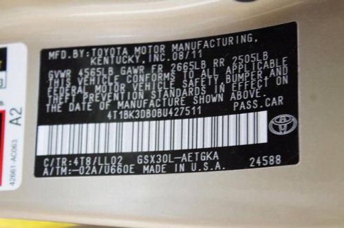 VIN (Vehicle Identification Number): 4T1BK3DB0BU427511