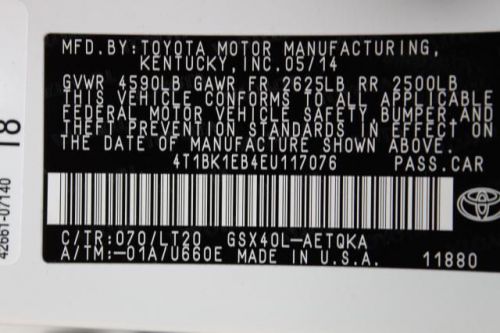 VIN (Vehicle Identification Number): 4T1BK1EB4EU117076