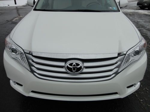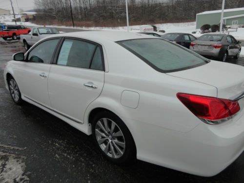 THANK YOU FOR VIEWING OUR BEAUTIFUL, 1-OWNER WHICH WE SOLD BRAND NEW, 100% CARFAX CERTIFIED, TOYOTA CERTIFIED WHICH COMES WITH A 7 YEAR / 100,000 MILE TOYOTA POWERTRAIN WARRANTY PLUS 1.9% APR FOR 60 MONTHS WITH TOYOTA FINANCIAL, 2011 TOYOTA AVALON LIMITED 3.5L V6 WITH HEATED & VENTILATED LEATHER SEATS, NAVIGATION, POWER MOONROOF, REAR BACK UP CAMERA, DUAL ZONE CLIMATE, BLUETOOTH, ETC IN BLIZZARD PEARL PAINT WITH IVORY HEATED / COOLED LEATHER SEATS AND ONLY 26,286 ORIGINAL 1-OWNER MILES! WE ARE A TOYOTA DEALERSHIP IN WESTERN PENNSYLVANIA AND WE ARE OFFERING THIS CERTIFIED AVALON LIMITED AT A SPECIAL, DISCOUNTED 'BUY IT NOW' PRICE ON EBAY FOR A VERY LIMITED TIME. THIS CERTIFIED AVALON IS AVAILABLE TO BOTH U.S. & CANADA BUYERS AND THE 100,000 MILE TOYOTA WARRANTY IS VALID IN ALL OF NORTH AMERICA! PLEASE VIEW THE COMPLETE LISTING INCLUDING 24 PHOTOS ALONG WITH A DETAILED VEHICLE DESCRIPTION ALONG WITH THE CLEAN CARFAX REPORT. WE ALSO INCLUDED THE ORIGINAL WINDOW STICKER WITH THE PHOTOS & VIDEO PROVIDED. PLEASE CONTACT SCOTT LONG @ (866)226-0570 OR (814)659-1908 OR EMAIL TO LAUFORD@AOL.COM WITH ANY QUESTIONS. THANK YOU FOR VIEWING AND BE SURE TO VIEW ALL OF OUR EBAY LISTINGS ALONG WITH OUR 100% POSITIVE FEEDBACK!