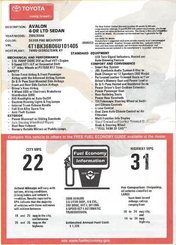 Loaded 2006 Toyota Avalon Limited Sedan 4-door 3.5l on 2040-cars