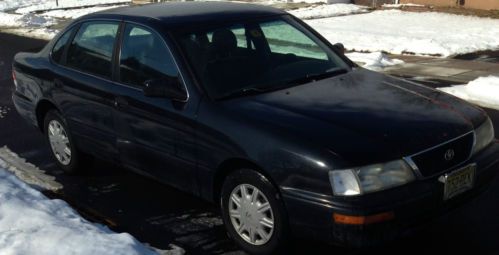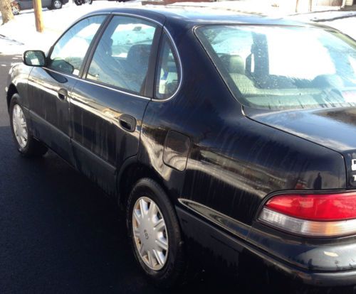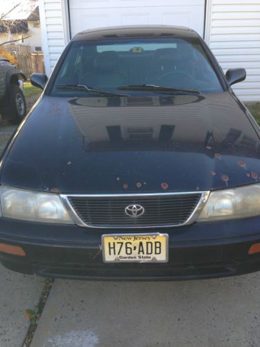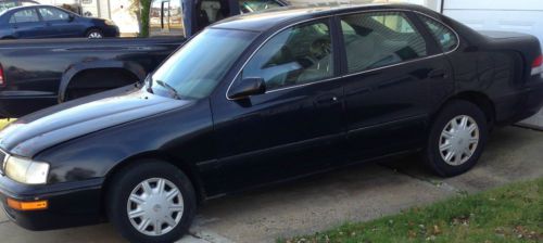 This low mileage 1997 Toyota Avalon spent it entire years in rural New Hampshire. It recently came to the City where it has been sitting on my driveway. I recently started driving it again. The car drives like a Toyota should with a good engine and a responsive transmission. The can has only being used for 152,000 miles. This is remarkable since the car is more than fifteen years old. It has a black body paint with a black supple leader seats. It has a radio /casstte with powered door, steering, seat and mirror. everything work in this car. The only minus is a staccatto