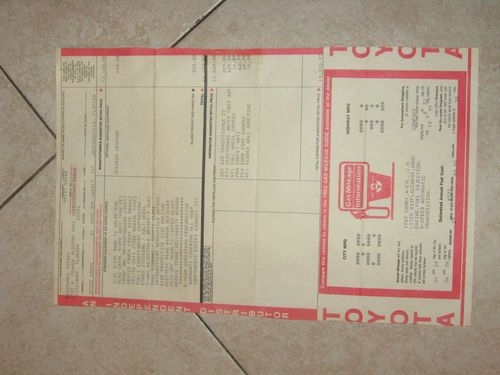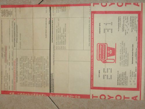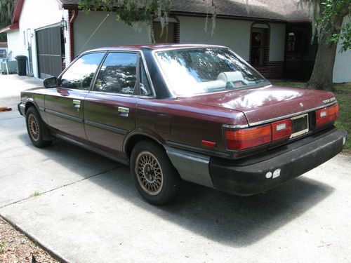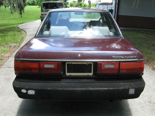 Up for auction is an original owner 1987 Toyota Camry. This car has a the original 2.0 Liter dual overhead (DOHC) cam with an automatic transmission. This car has been meticulusilly maintained (see photos) We have the original window sticker (see photo), it runs very, very, very well, and the A/C still works. This car has been in Florida, so there is no rot. Contact me thru ebay, or joecopmpd@gmail.com.