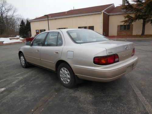 For sale is a 1996 Toyota Camry. It runs and drives and is a great commuter car. The engine and trans are solid. The only problems it has is a small crack on the driver's side side marker (but it is still good). Also, some of the paint is faded on the car. All the plastic panels on the exterior are darker than the metal panels from sun fade. The car has 156k. Please feel free to test drive this vehicle before you purchase.