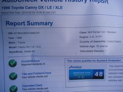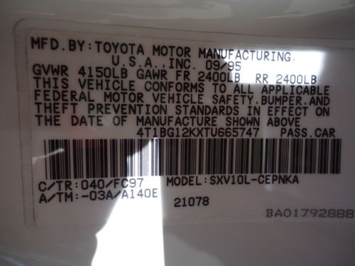 1996 Toyota Camry Le 2.2l 4 Cyl. One Owner! White/taupe A/t 36k Miles Great Car! on 2040-cars