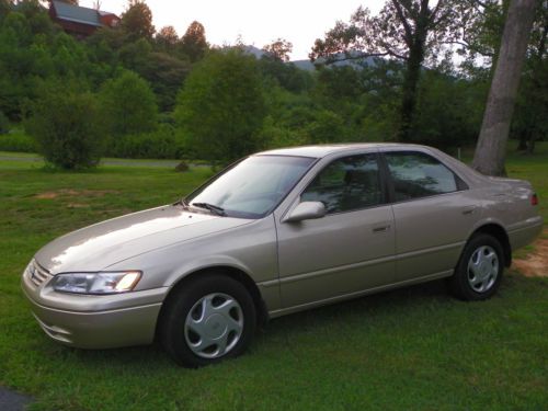 1998 TOYOTA CAMRY LE 4DOOR AUTOMATIC V6, A/C POWER WINDOWS,LOCKS, 57301 ORIGINAL MILES VERY CLEAN CAR INTERIOR LIKE NEW NO STAINS OR TEARS IN SEATS EXTERIOR PAINT VERY NICE SMALL SKUFFS ON FRONT BUMER AND RIGHT FRONT SIDE MARKER CRACKED SEE PICTURES SMALL AREA ON RIGHT REAR HAS SCRATCHES BOUGHT VEHICLE FROM DONATION AUCTION APPEARS TO HAVE BEEN WELL TAKEN CARE OF RUNS GREAT.