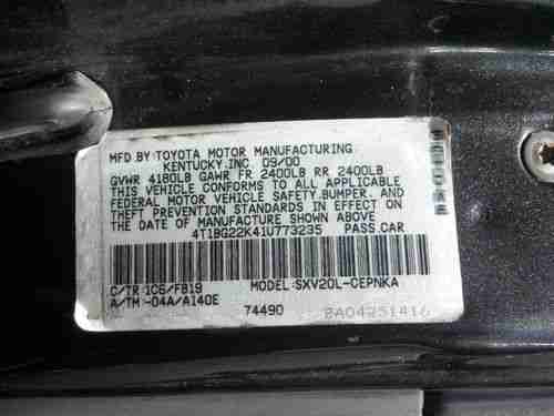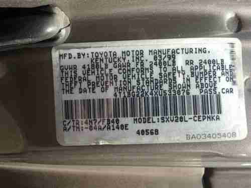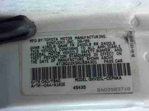 The 1999 is white with tan interior. It is a 4 cylinder LE with cloth interior. This car will start and run good but the transmission is bad. It moves in reverse but not in any other gear.