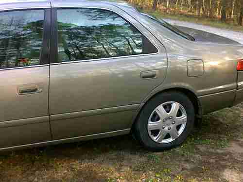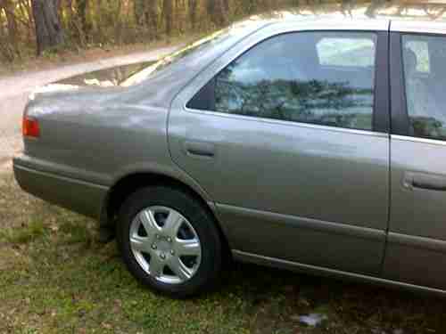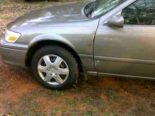 This is a good running 2001 Toyota Camry. I have had the clutch replaced less than a year ago and the parts have a life-time warranty. The only thing it needs is an O2 sensor. Everything runs good on the car and it should have many miles of life left. The blemishes that the car has are in the photos. There is no warranty expressed or implied. If you have any questions you can e-mail or call me @ 256-391-7693. I have the vehicle for sale locally so I reserve the right to end the auction early. Thanks for viewing my auction and good luck on your bidding.