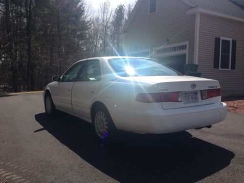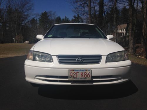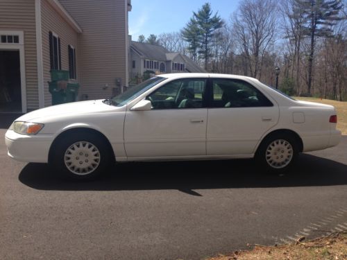 Must see this 2001 Camry CE Sedan in great condition! I purchased this car from the Toyota dealer in 2005 as a certified pre-owned vehicle. Dealer-serviced. Recent 120,000-mile service. New paint job 2/2014. Replaced struts at 105K miles. New timing belt at 85K miles. No mechanical issues. Runs and performs great with the 4-cylinder 2.2L engine, FWD, and automatic transmission. Non-smoker. No pets. Garage-kept. Features include Leather Seats, ABS Brakes, A/C, Driver Power Window, Power Door Locks, Power Mirrors, Tilt Wheel, Dual Airbags, Rear Defroster, Floor Mats, CD Player and Cassette Player. Low mileage for its year and this reliable Toyota can be driven for probably another 200K miles! Will not disappoint, call for more details.