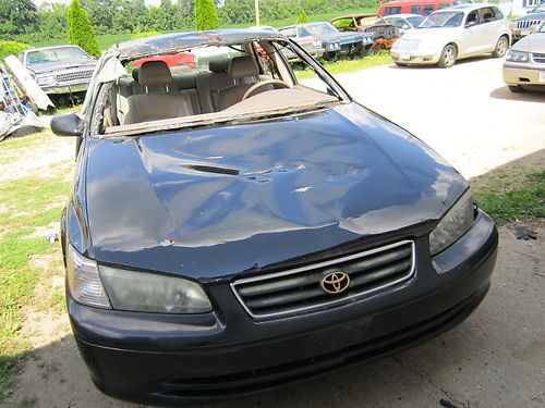 This is an 01' Toyota Camry that was in a accident. It has a clean clear title and can easily be put back together. Needs a roof skin, windshield, left front left rear door and right front passenger door. Also needs a hood. Engine runs strong and transmission shifts good. Excellent car until accident. If you have any other questions or concerns please email me. Thanks.