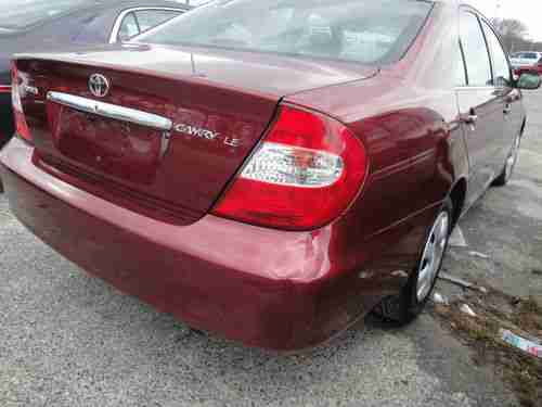 hello this is a 2002 toyota camry le , four cylinder engine , automatic transmission, this car is for parts or repair , the reason is , the engine get a overheat , turn over but no start , please read before to bidd , the engine in the car turn over but the car no power on , this car need a new engine o rebuilt the old one , clean title on hand this car have a 181,xxx miles but is on great clean condition , just a small rust show in a picture ,tires are on great condition and the paint still shine ,no accident or others damage on the car , this car come from non smoke owner , is a power windows, power mirror, six disc cd player, sunroof ,automatic transmission ,please take a look on all the pictures and feel free to ask any question , members with less than 10 feedback please contact the seller before to bidd,,, this car is for parts or repair , sold as is no warranty this car is locate in north dighton, ma 02764 please pay a deposit 250$ non refundable when buy now ,