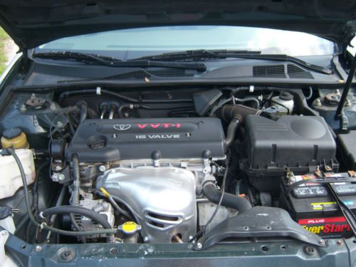 2002 Toyota Camry for sale. Dark green exterior, gray and tan interior. 89k, auto, 4cyl. Very economical. I have a clean title in hand. Runs and drives great. Minor scuff on rear bumper,besides that very clean car. No engine or electrical problems. Well maintained. The car now has a new drive belt,battery,spark plugs and 75% on tires. Tinted windows.Cd player, Power interior, and have 2 remotes and keys. Used only synthetic oil. This car is very reliable and will run as long as its maintained. Great car!! No warranty and sold as is. Buyer is responsible for pick up or delivery. Contact me for extra pictures.