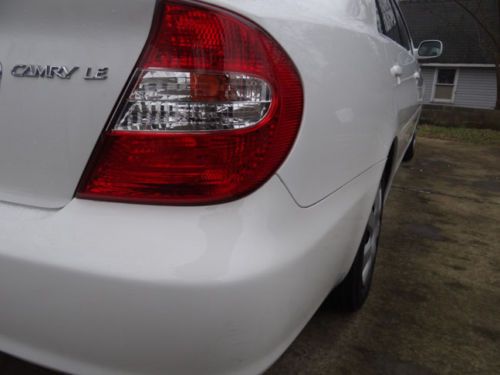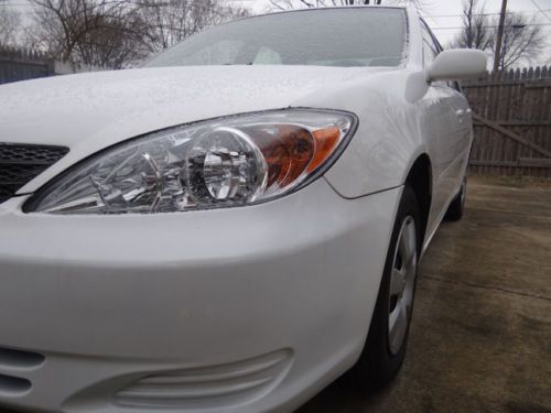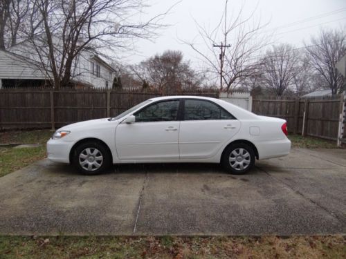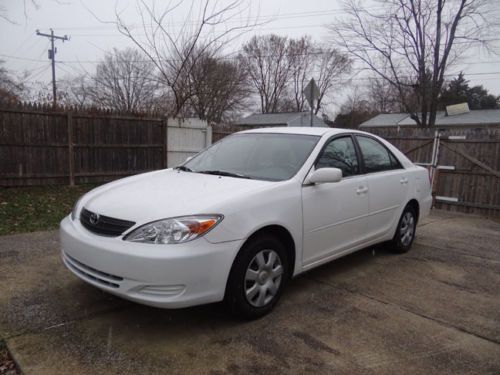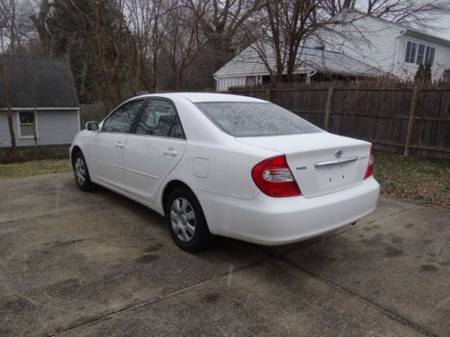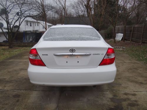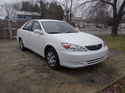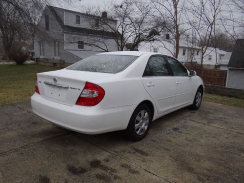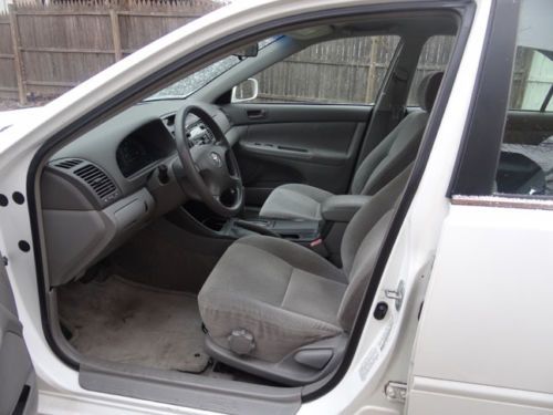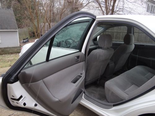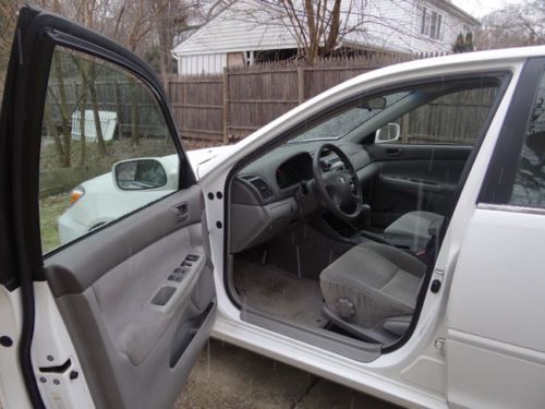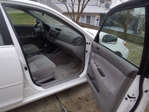 Up for Sale is a Super Nice Looking 2002 Toyota Camry in Excellent Condition - The car Runs and Looks Great with No Issues - It Runs Great on the highway Very Quiet and Smooth - It has not been smoked in and has a Very Clean Gray interior and a Very Nice white Exterior (See Pictures) - Steering and Suspensions are tight and Responsive - There are No Rust or Leaks - This car has good Tires, Brakes and Battery and will be inspected free-of-charge if you live in this area - Still, we are selling a Used Car and as such it is the responsibility of the buyer to independently evaluate the vehicle as to its condition and Value - Everyone is Welcomed and encouraged to inspect the vehicle in person and/or Ask all relevant questions before placing a bid - The car will be sold to the highest bidder at the end of the auction with NO RESERVE Price - We ask all buyers to post a $400.00 deposit immediately after the auction and arrange for pickup within 3 days (out of area buyers will have up to a week) to avoid storage fees of $25.00/day - New/Zero feedback buyers must contact the seller or their bids may be cancelled - Thanks for looking at our auction for this Great Vehicle and Good Luck on your bids-