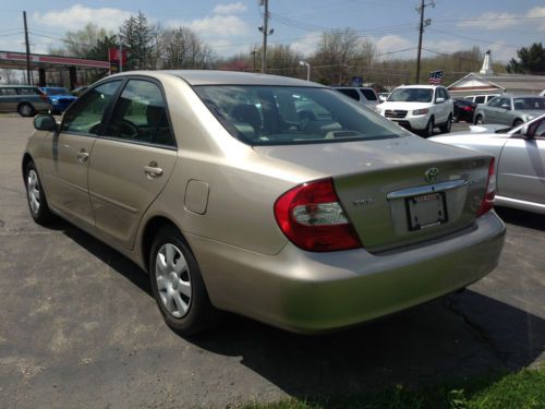 This 2003 Toyota Camry has a BAD ENGINE - The body and interior are actually in great shape and we have been driving it quite often until the other day when the engine's timing belt broke. Everything else works on this Camry. All of the electronics and transmission are still good. The tires are 60% and in good condition. It currently has 196k miles, although you wouldn't know it from the condition of the body and interior. It is being Sold by KRIS RADIO QUALITY KARS in Mansfield, OH. We are celebrating 25 years of service this month! When you come to purchase the vehicle, we will have the title flipped into your name while you are here. Some states may require you to pay tax while you are here. Others will pay their tax in their own state when they return. THERE WILL BE NO ADDED fees. Many dealerships charge title and service fees. NOT US. You pay what the bid end at, period. As I previously mentioned, your State may require you to pay your tax while you are here. It is being sold As Is because of the bad engine. Before the engine went bad there were no known problems.